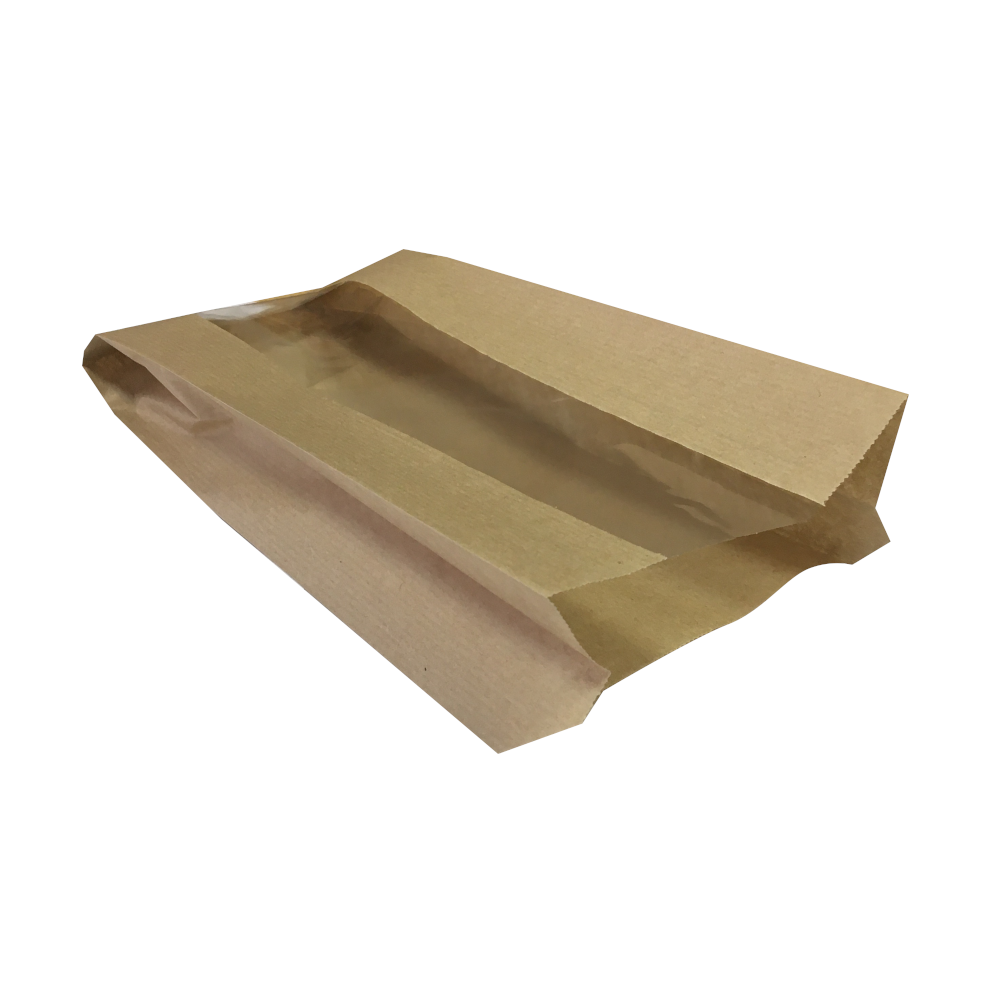 Крафтовые пакеты с продольным прозрачным окном.