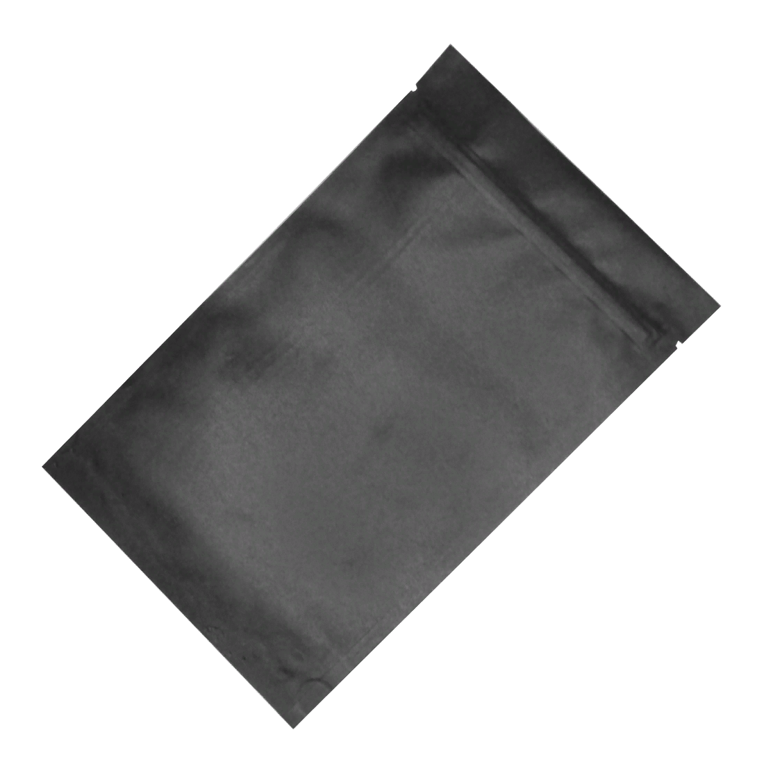 Размер 135×200+(35+35) мм. Высота до замка 165 мм. Материал крафт-бумага чёрного цвета, ламинированная металлизированным полипропиленом (бумага/BOPPmet/PE). Замок зиплок. Насечки.