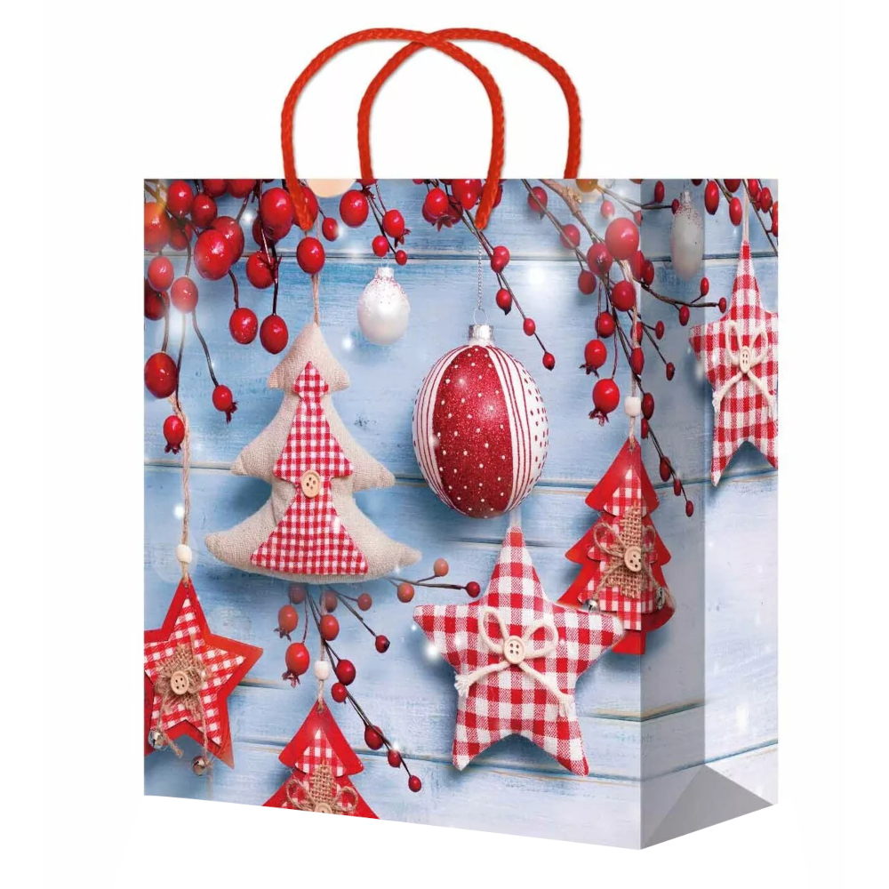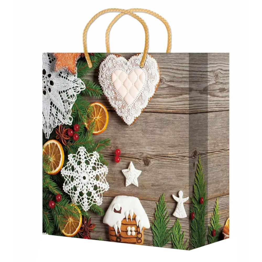 Пакет бумажный подарочный новогодний, MIX, 20×20×10 см