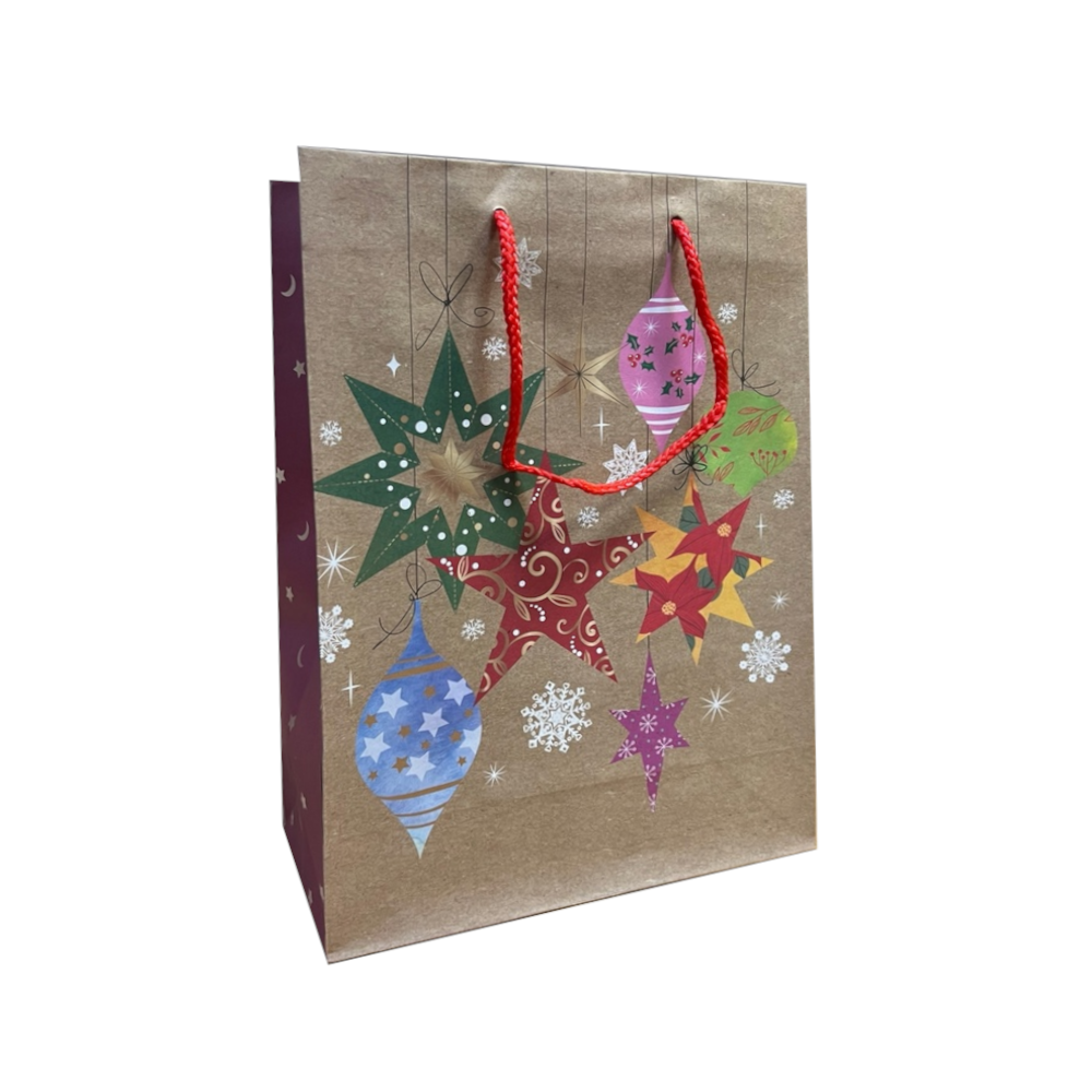 Пакеты изготовлены из плотной ламинированной крафт-бумаги (150 г/м²) с прочными веревочными ручками. Удобный размер 22×31×10 см и прямоугольное дно делают их идеальными для подарков большинства стандартных форм.