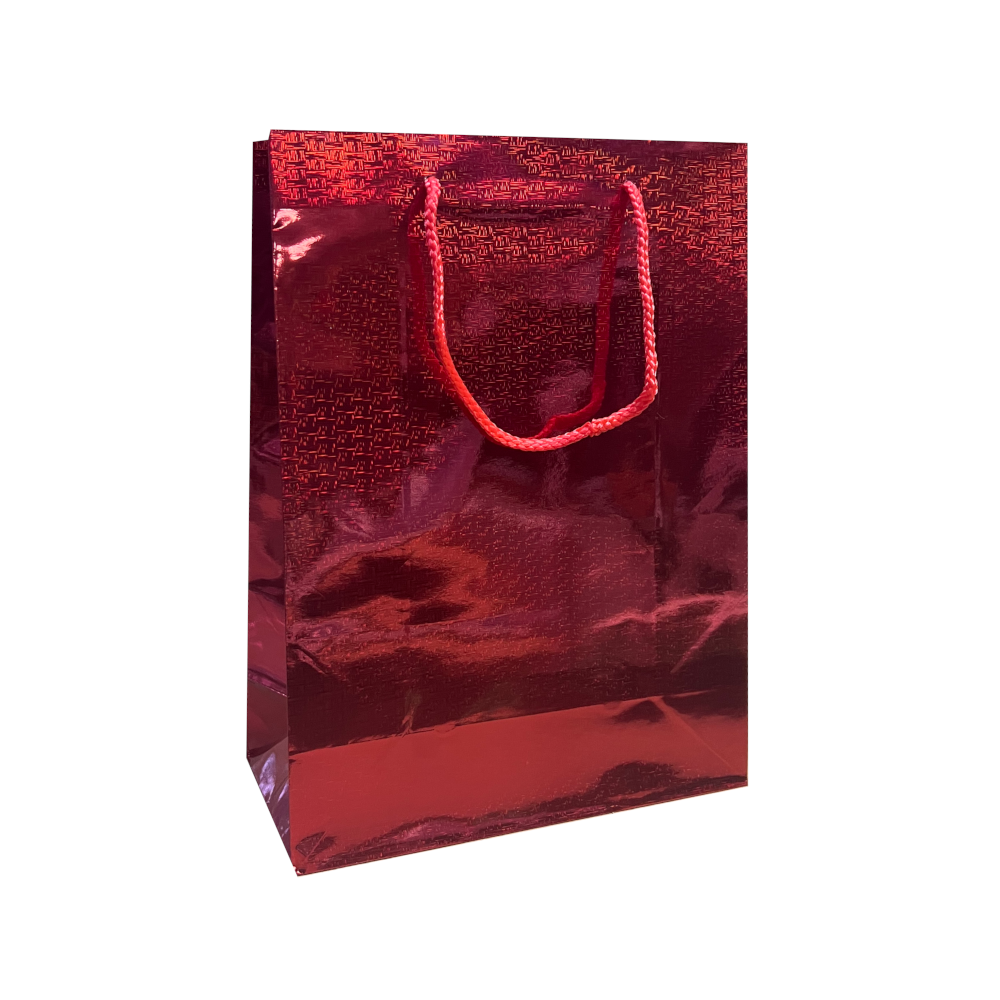 Пакеты изготовлены из плотной мелованной бумаги с качественной голографической печатью. Удобный размер 22×31×10 см и надежные ручки делают их практичными для подарков большинства стандартных форм.