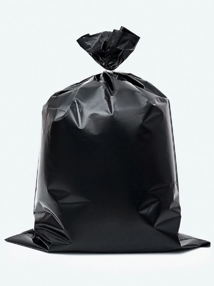 Большой чёрный мусорный пакет. Очень плотная плёнка, хорошо пропаянные швы. Не протекает.