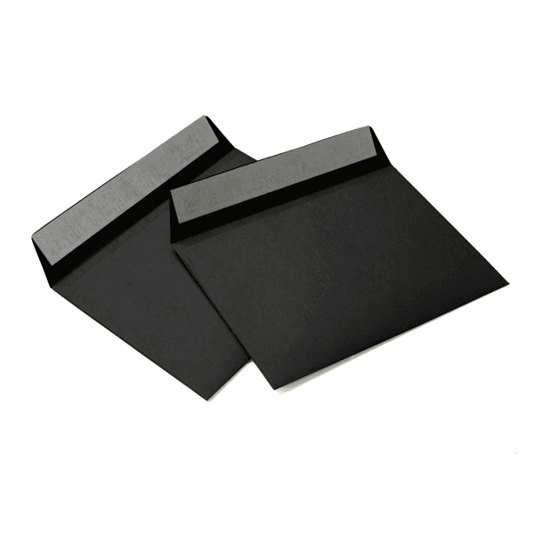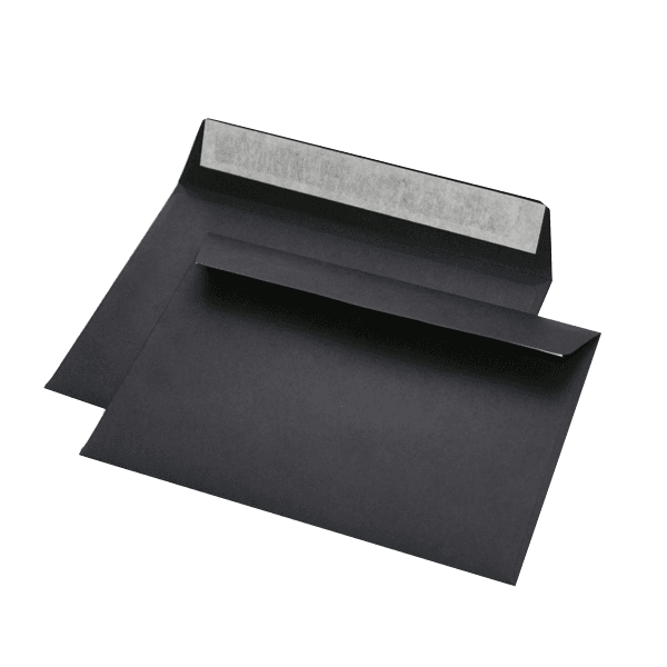 Размер С6 114×162 мм. Плотность 110 г/м². Цвет черный. Стрип.